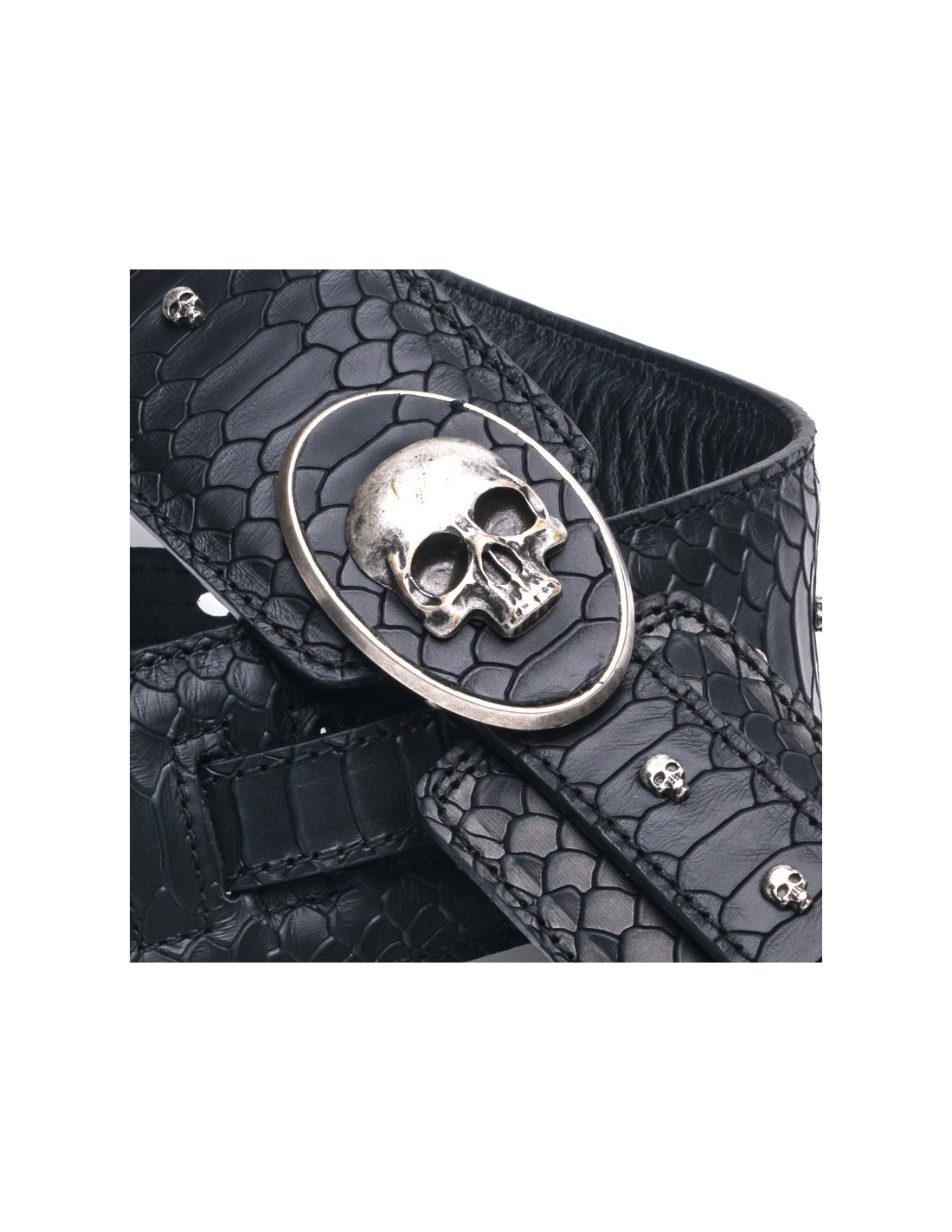 Strap for guitar or bass made with high quality bovine leather, inside lining also made of leather. Metallic ornaments and sewn details. Cushioned for the best comfort. Completely handmade in Spain.