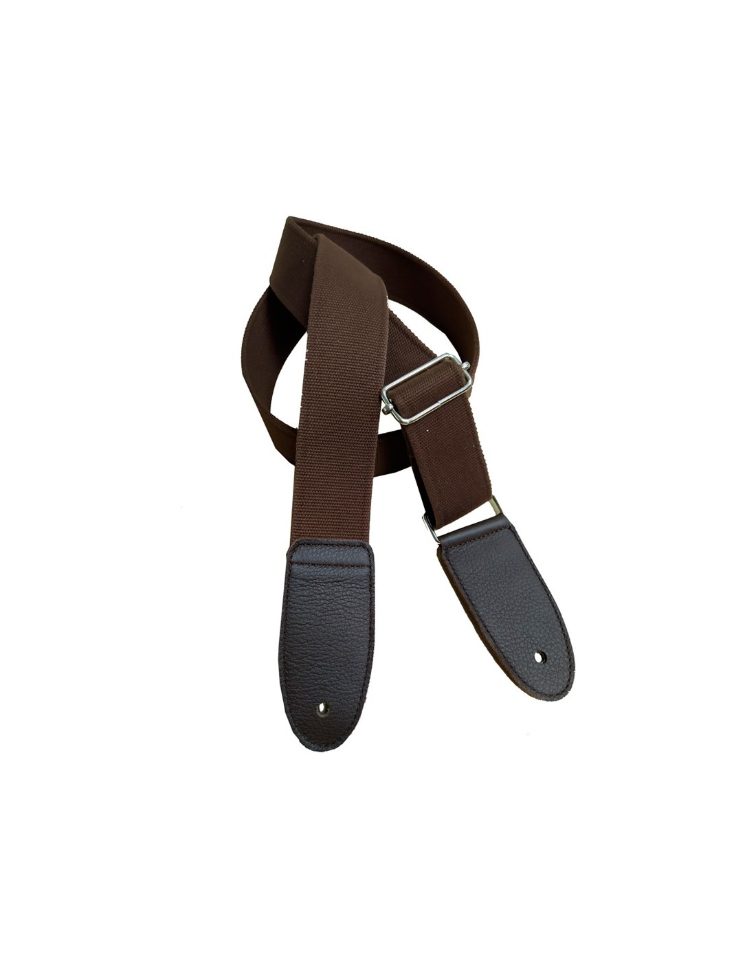 Strap for guitar or bass made of cotton. Double leather endings with metallic buckles. Completely handmade in Spain.