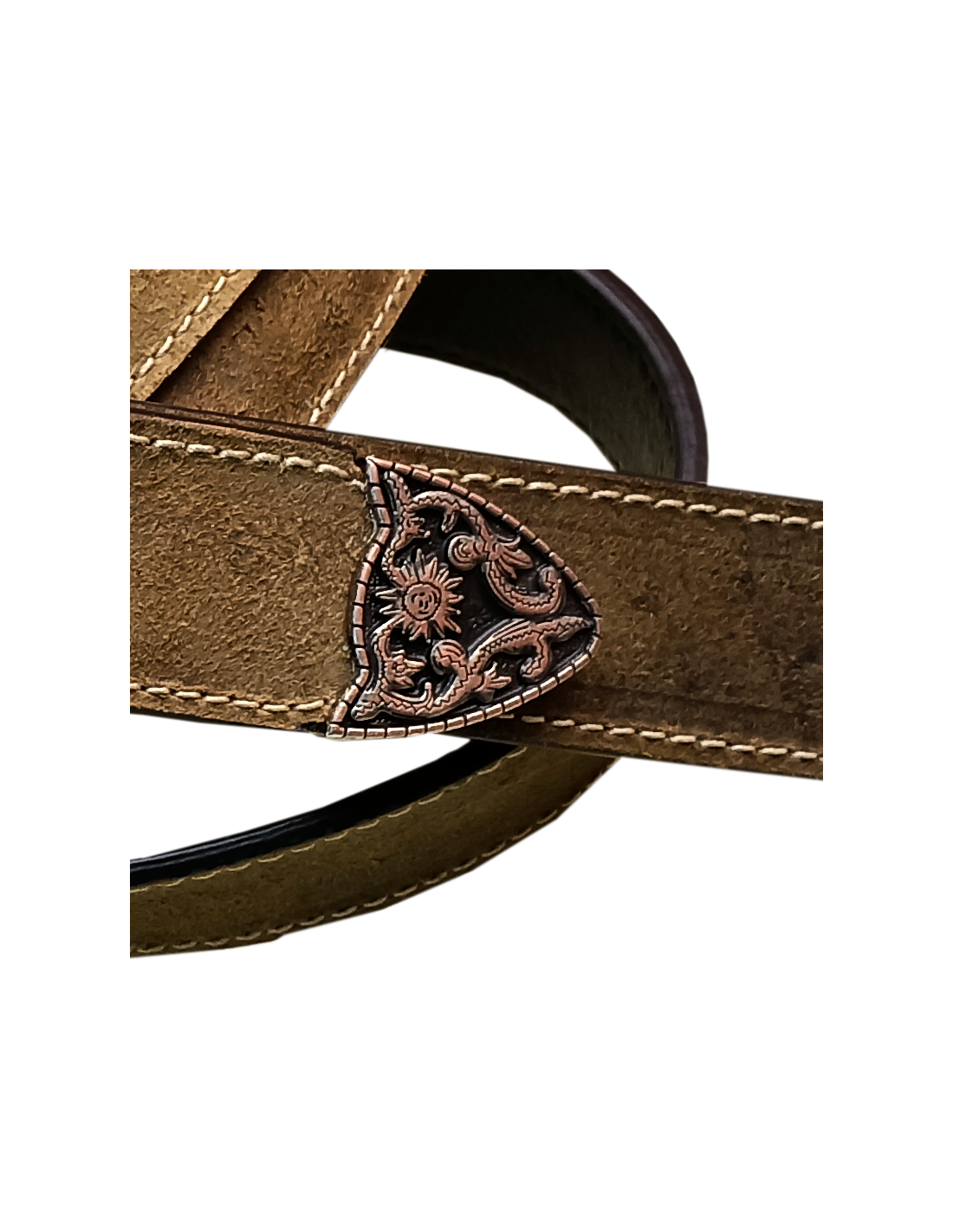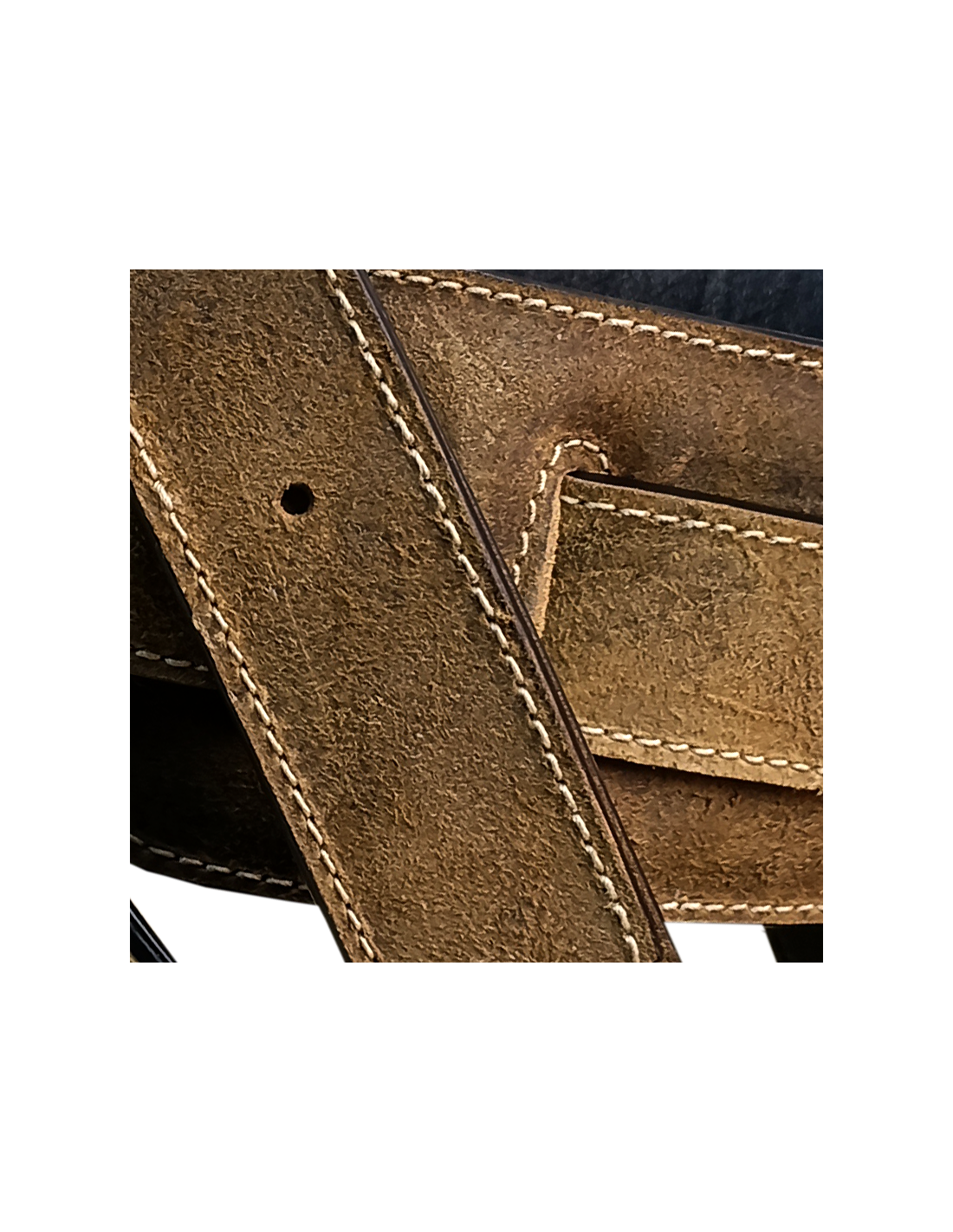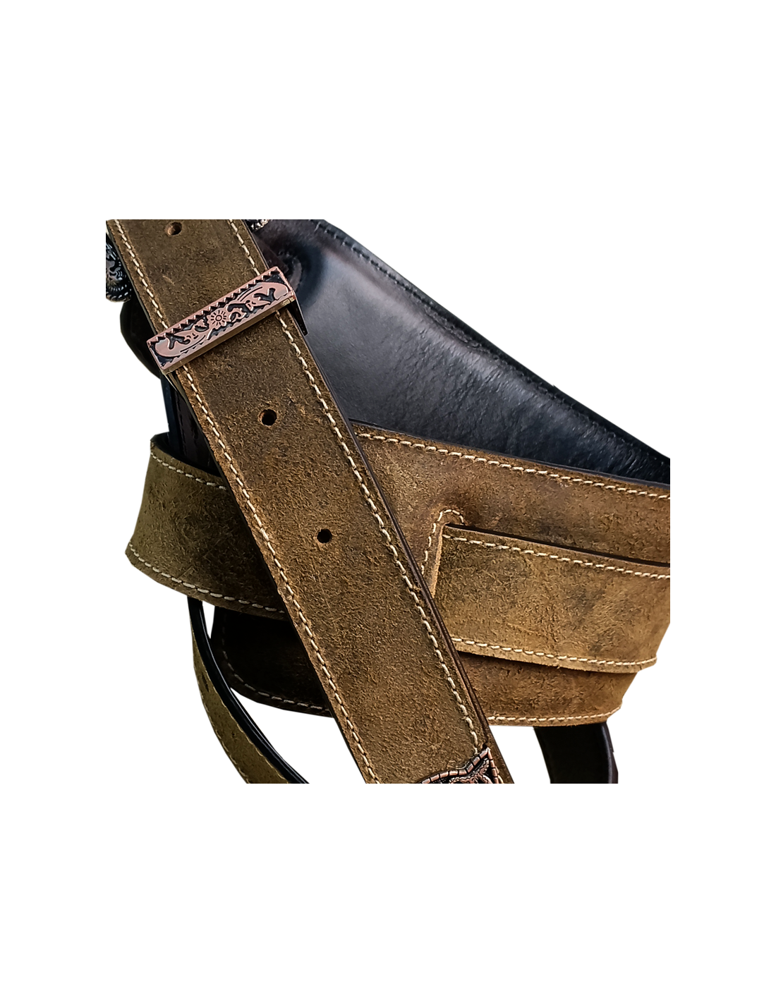 Strap for guitar or bass made with high quality bovine leather, inside lining also made of leather. Metallic ornaments and sewn details. Cushioned for the best comfort. Completely handmade in Spain.