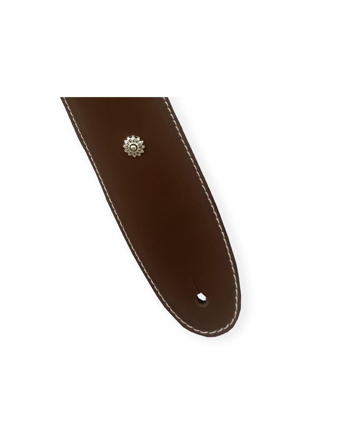 Los conchos se han utilizado desde tiempos remotos para ornamentar partes de vestimentas para personas o para animales ,desde sillas de montar de samuráis a las cartucheras de forajidos del "western" americano. La Conchos con estos preciosos adornos en color plata oxido que en combinación con el cuero dan ese aspecto elegante a una correa de guitarra muy atractiva.